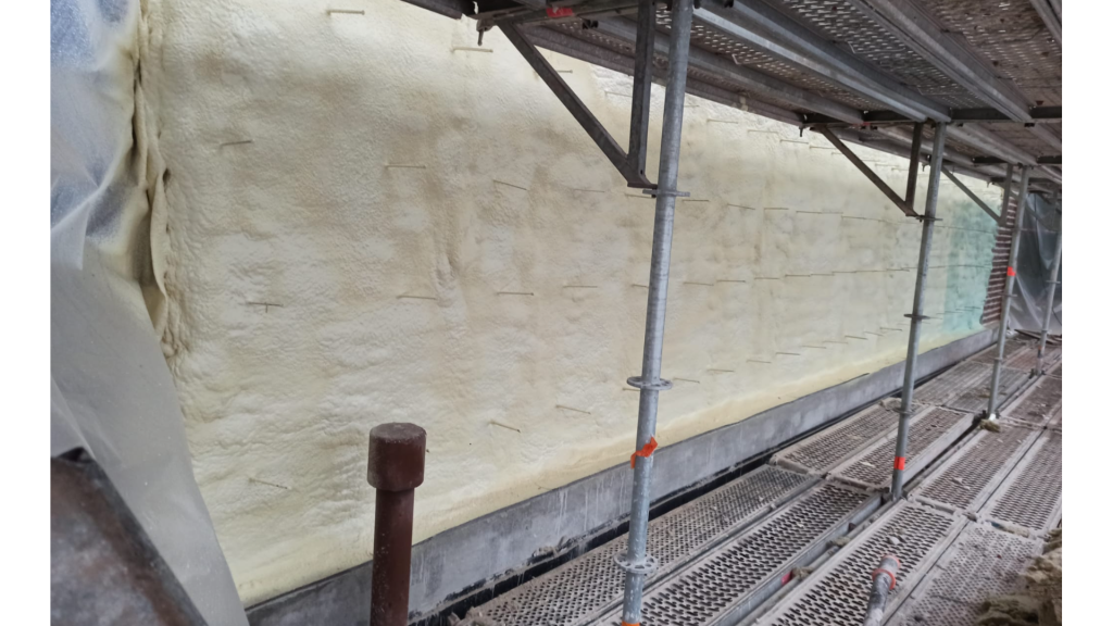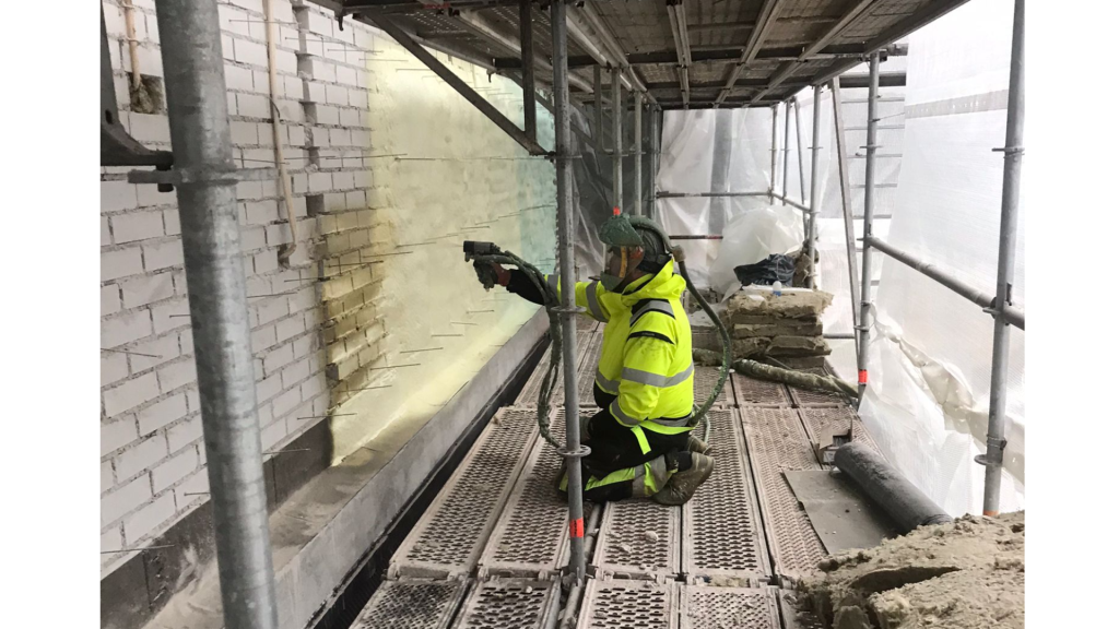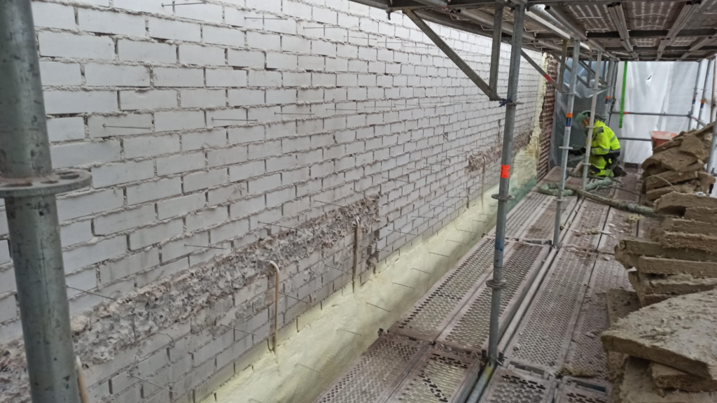 Kävimme eristämässä saneerauskohteessa ulkoseinän. Vanhat tiilet oli purettu alta pois ja samoin vanhat eristeet. Työ tehtiin kahdessa päivässä. Tästä pääsi Nurmijärven Muurarit helposti jatkamaan muuraustöitä.