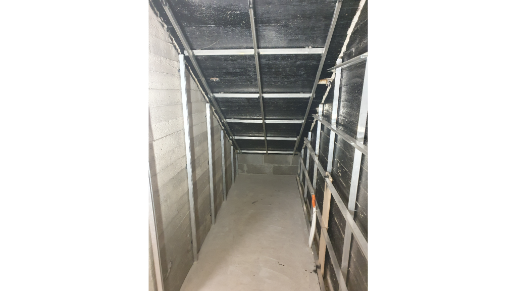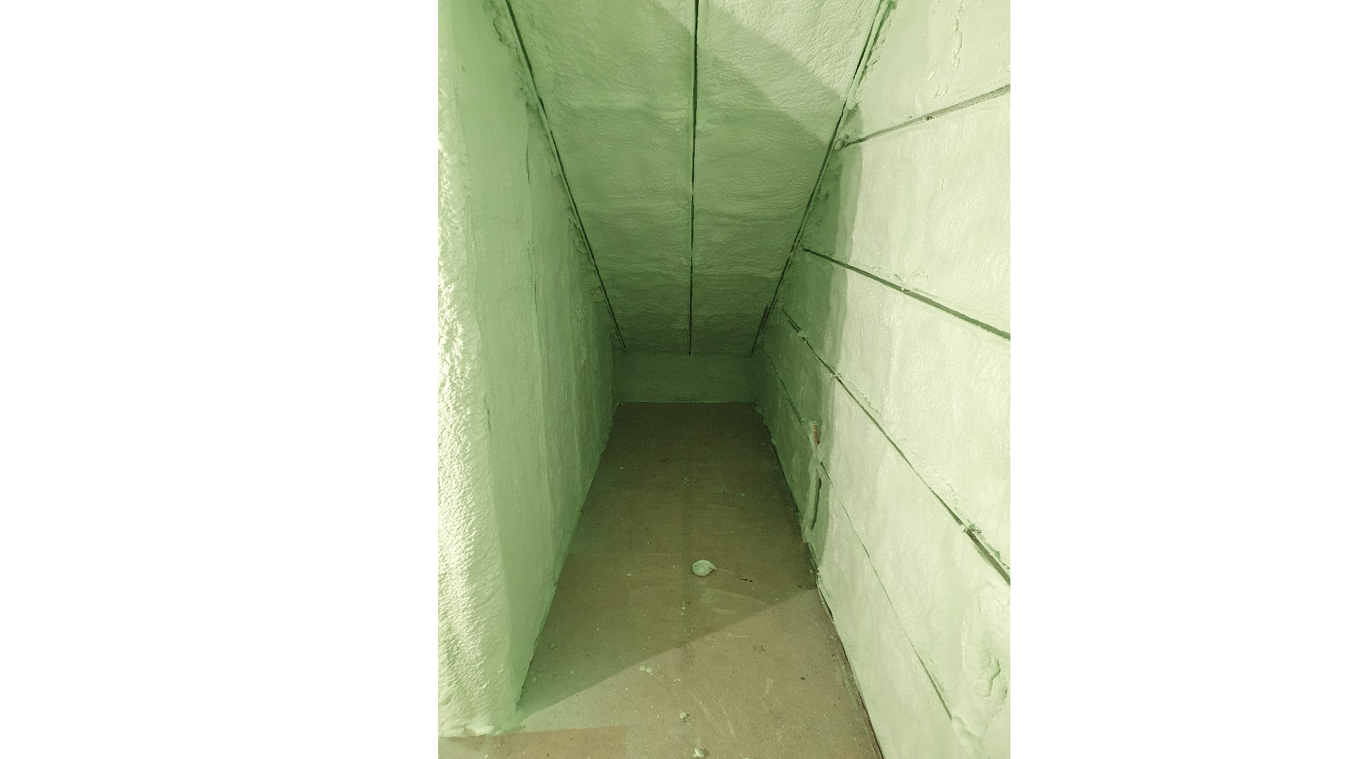 Asiakas oli tehnyt jo sähkö-, vesi- ja ilmanvaihdon vedot valmiiksi. Hän oli myös asentanut uuden metallirankan tilan seinille. Meidän tehtävä oli eristää seinät ja katto kapseloivalla HeatLok HFO Pro -uretaanilla (Huntsman Building Solutions). Kaikki sujui suunnitellusti ja asiakas oli erittäin tyytyväinen.
