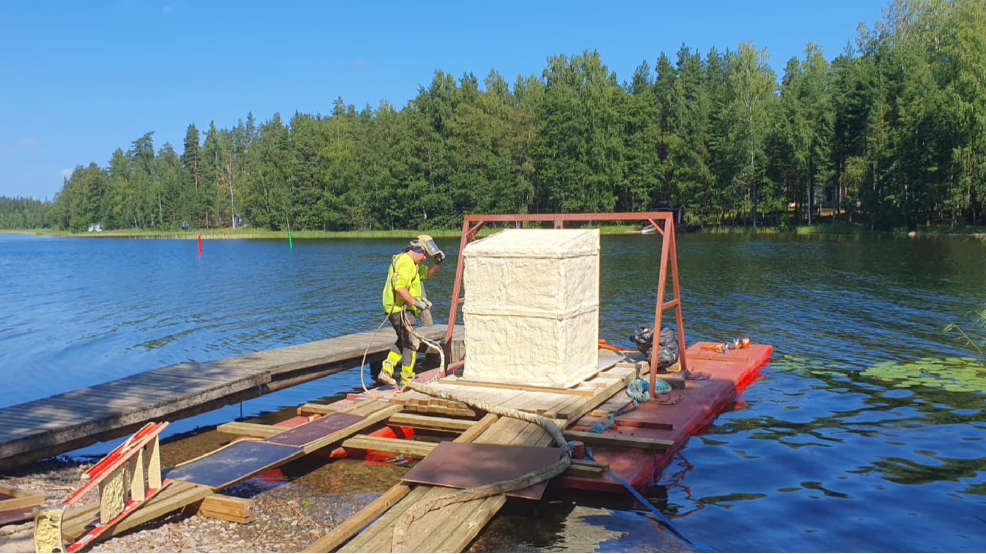 Eristimme akustokopin järven rannalla.
