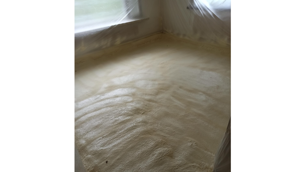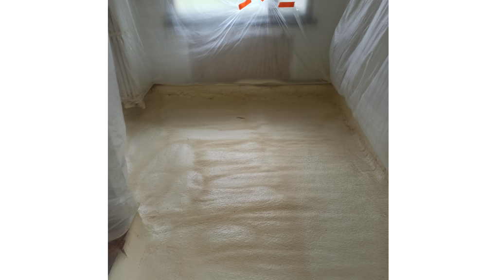 Maavaraisen betonilaatan eristys suljettusoluisella ruiskutettavalla uretaanilla.