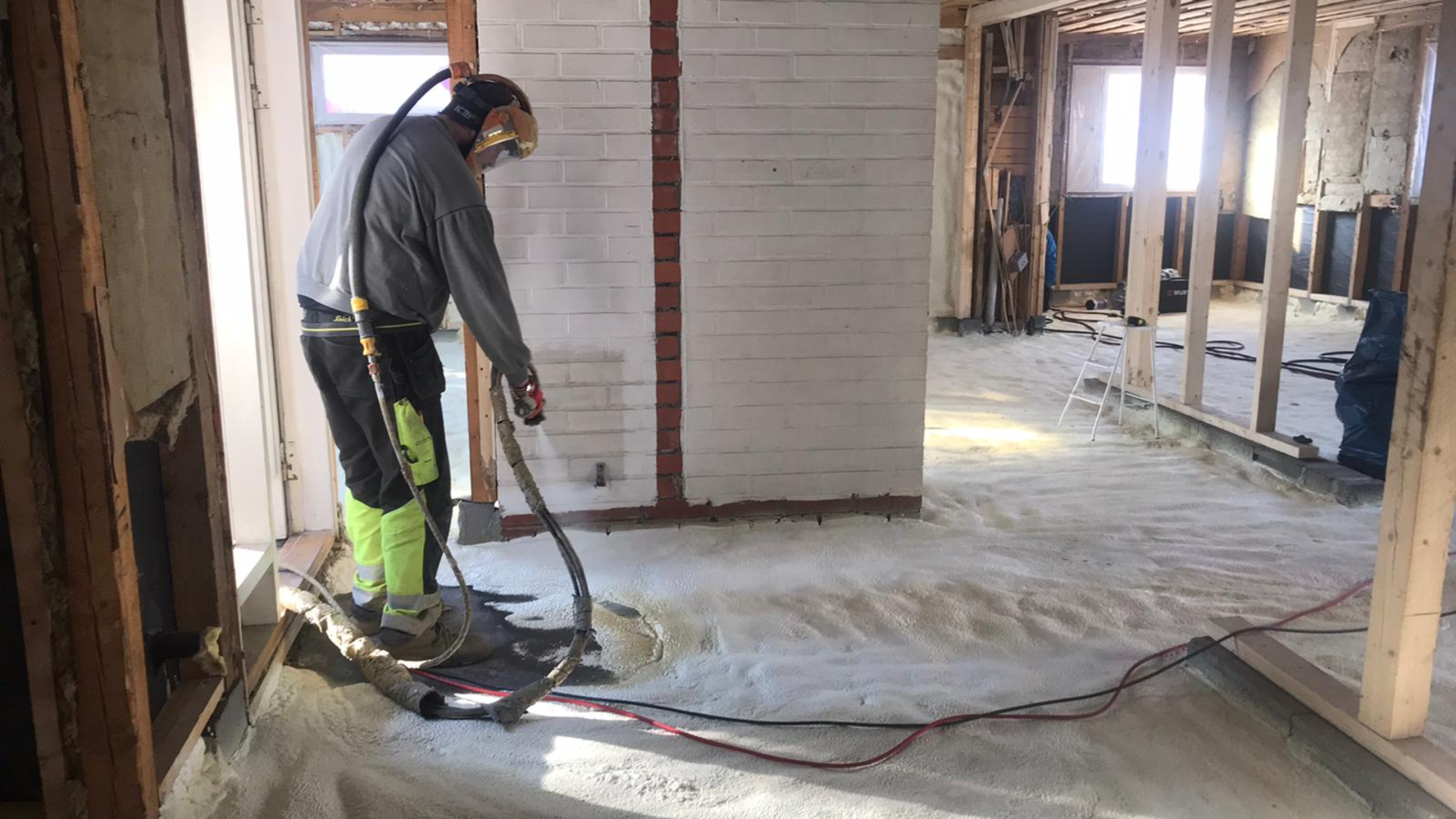 Alustavasti oli tarkoitus eristää vain 70-lukulaisen talon maanvarainen betonilaatta. Tämä toki tehtiin, mutta lisäksi ammattilaisemme konsultoivat muutaman päivän ajan tilaajan omia timpureita valesokkelin kengityksessä. Talon ulkoseinät eristettiin avoimen solun uretaanilla. Ruiskutettava polyuretaani valikoitui lattian eristeeksi erinomaisten eristysominaisuuksiensa takia, mutta myös sen mahdollistaman maltillisen eristyspaksuuden ja asennusnopeuden vuoksi. ”Olimme erittäin tyytyväisiä. Todella osaavia alan ammattilaisia – niin kengittäjät kuin uretaanieristyksenkin tekijät.” ”Viking Solutionsin tuote ja palvelu sopi meille erinomaisesti” ”Ehdottomasti hyödyntäisin Viking Solutionsin palveluita jatkossakin. Voin vahvasti suositella muillekin.”