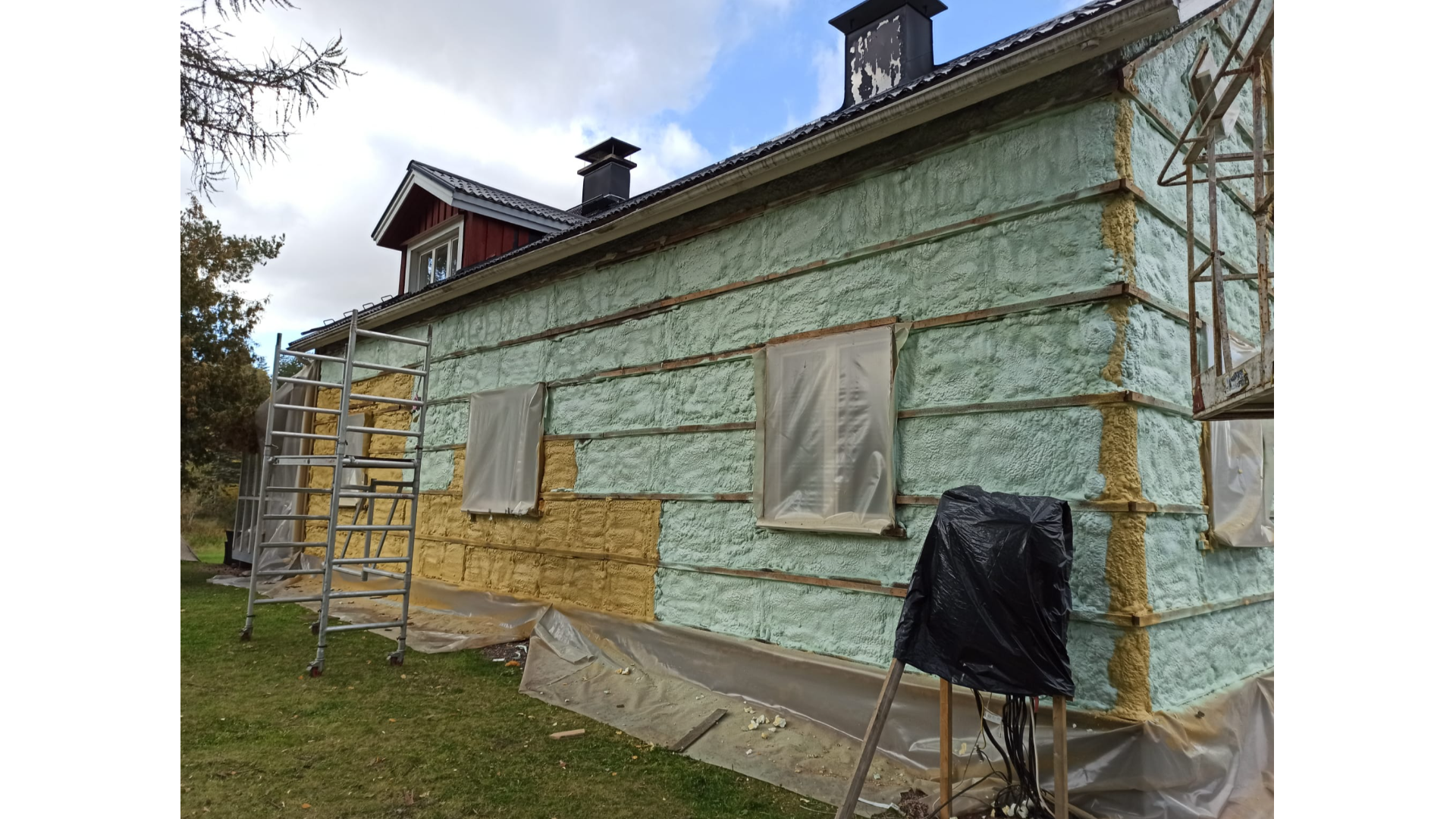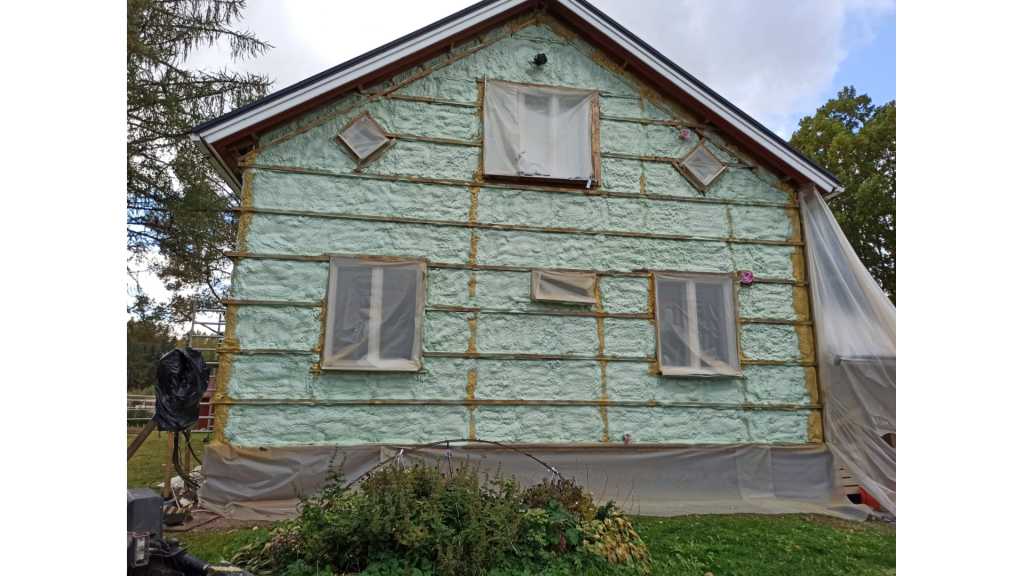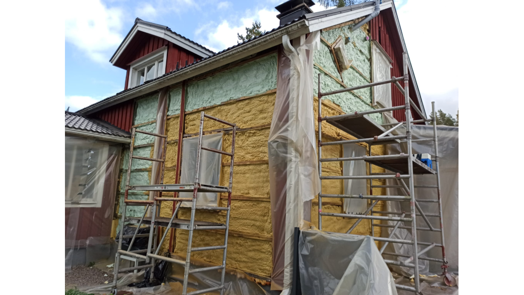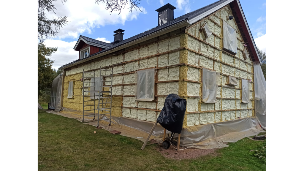 Omakotitalon julkisivun eristys ruiskutettavalla uretaanilla