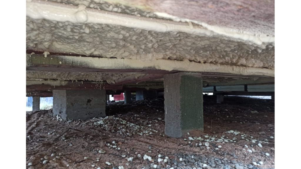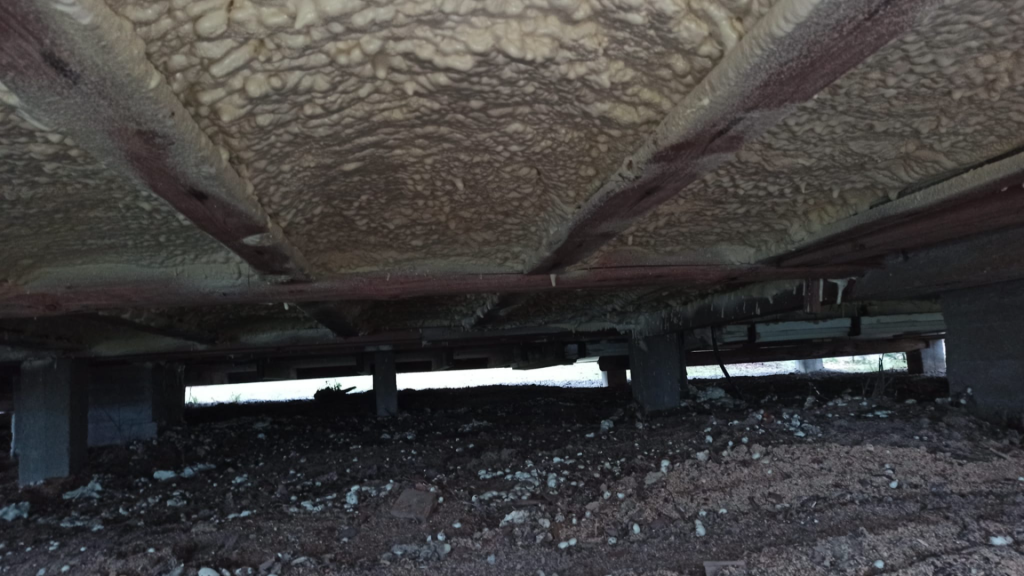 Tässä kohteessa eristäjällä oli todella vähän tilaa operoida, oikea ryömintäkohde. Ruiskutettavalla uretaanilla tällaisetkin haastavat tilat on mahdollista eristää suhteellisen vaivattomasti. Materiaali kulkee kerralla eristäjän mukana letkua pitkin, ja eriste kiinnittyy itsestään.