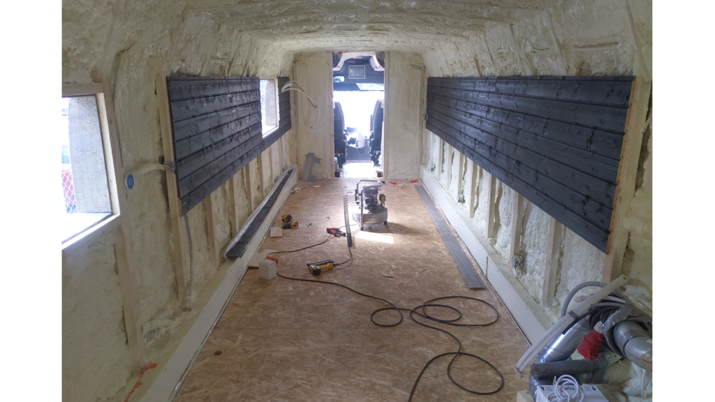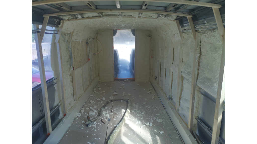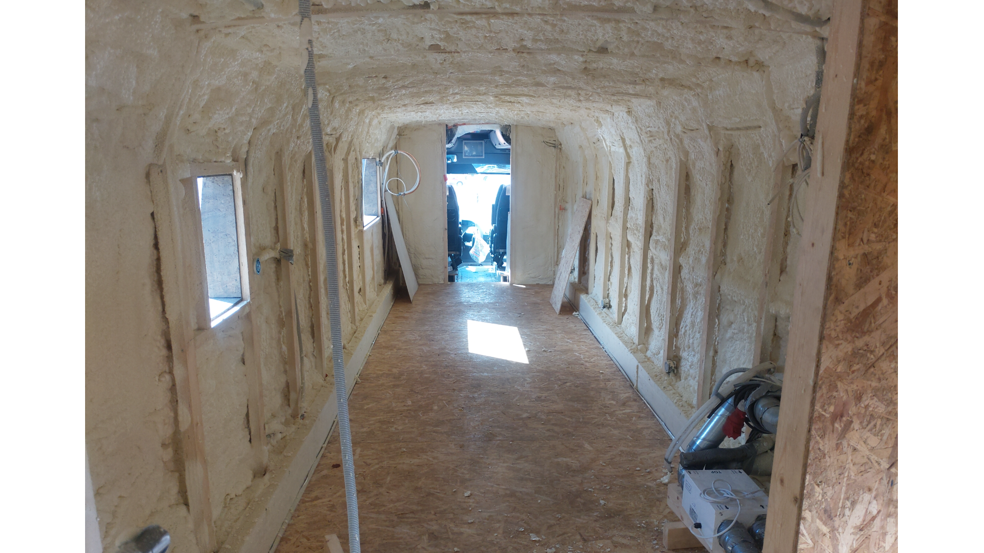Linja-autosta asunto. Asiakas rakensi bussista itselleen liikkuvan kodin. Me eristimme asunto-osan seinät ja katon.