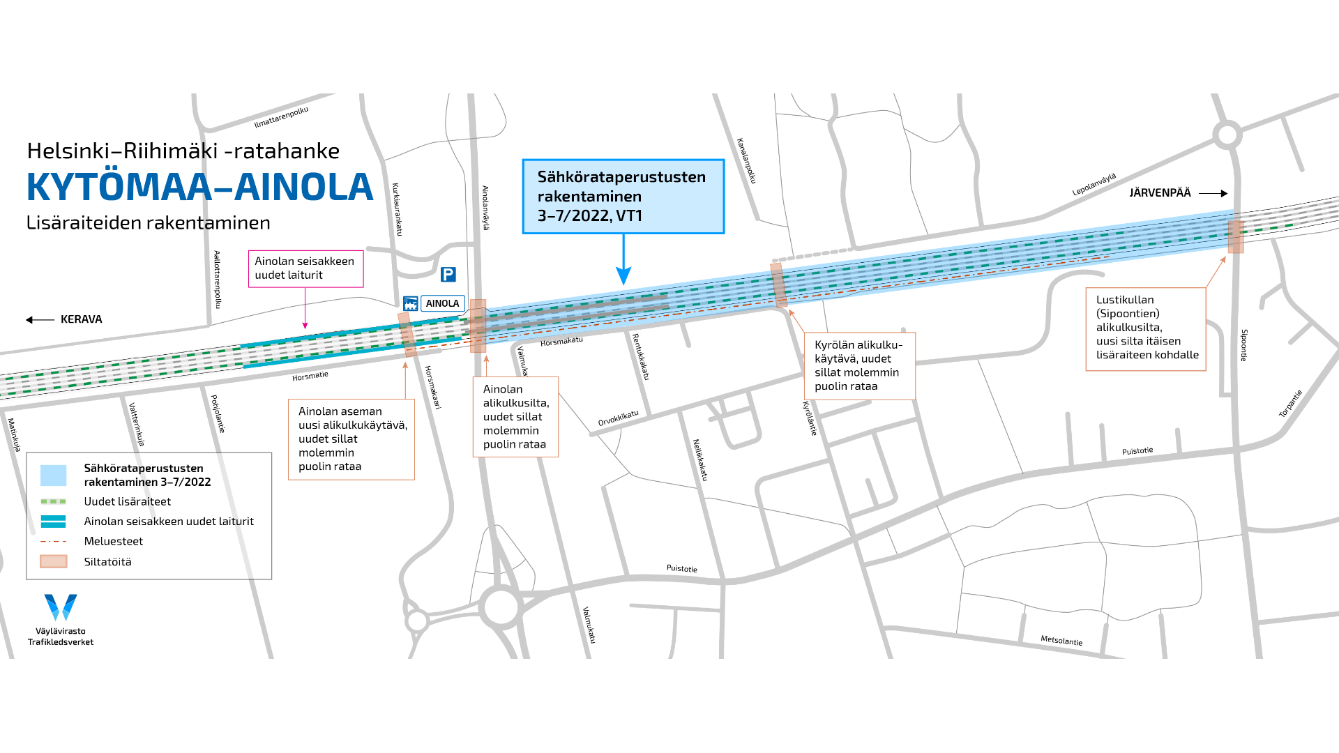 Helsinki-Riihimäki ratahankkeen Kytömaa-Ainola lisäraiteiden perustustyöt 4-12/2022. Jatkoimme samassa kohteessa kevään 2023 stabilointitöissä.